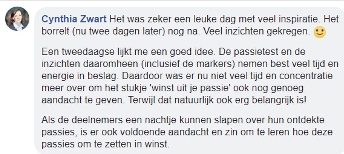 Door deze workshop te geven voel ik mezelf verplicht om zelf ook een gepassioneerd leven te leiden.