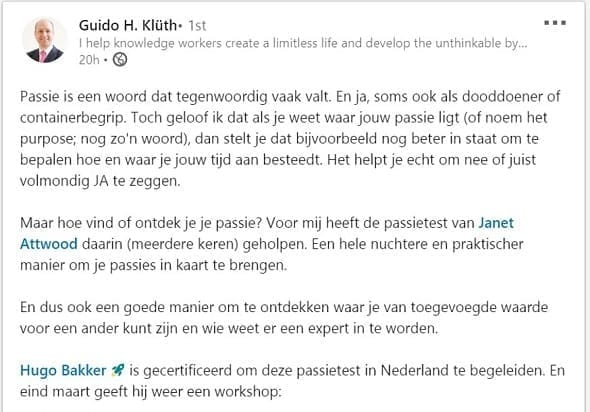 2x per jaar doe ik de Passie Test en volg ik mijn hart.